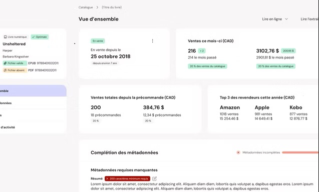 Que vous soyez un nouvel éditeur qui se lance dans le livre numérique ou audio, ou que vous gériez un catalogue restreint avec une équipe réduite, Cantook Édition est votre solution pour une distribution numérique professionnelle en toute simplicité.